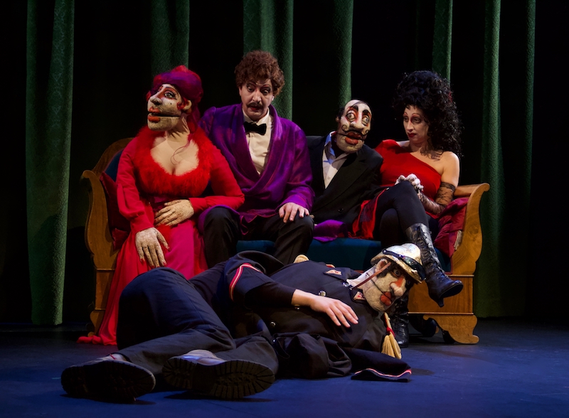 Une satire comique de notre société, dans une version norme, pour quatre comédiens et trois marionnettes de grandeur humaine. Cette conception trouve ici sa légitimité, car elle démasque ces êtres marionnettisés par l’absurdité de la petite bourgeoisie qui les tourne en ridicule.