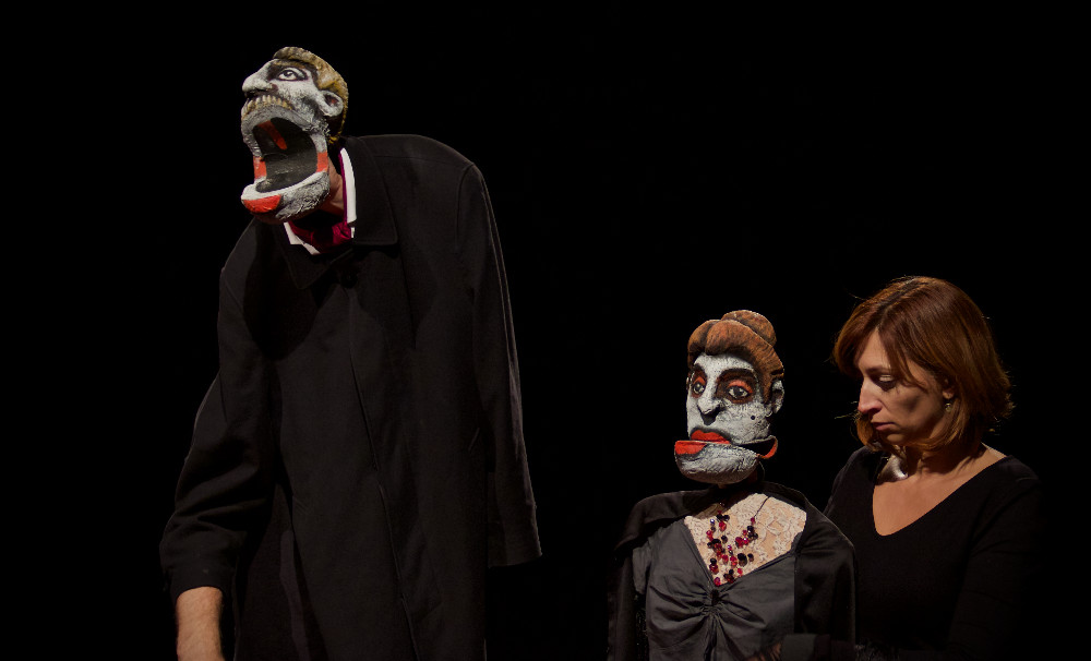 Dans cette adaptation du chef-d’œuvre comique de Tchékhov, il s’agit d’une histoire de coups de foudre amoureux qui s’entrechoquent, dans laquelle les marionnettes, les personnages et les marionnettistes s’attirent, s’aiment, se désirent… En démultipliant les personnages, en créant un effet de miroir entre marionnettistes et marionnettes, la passion des uns, puis des deux autres, puis des quatre à la fois, participeront à cette spirale hyperbolique de folie amoureuse que nous propose la farce de Tchékhov.