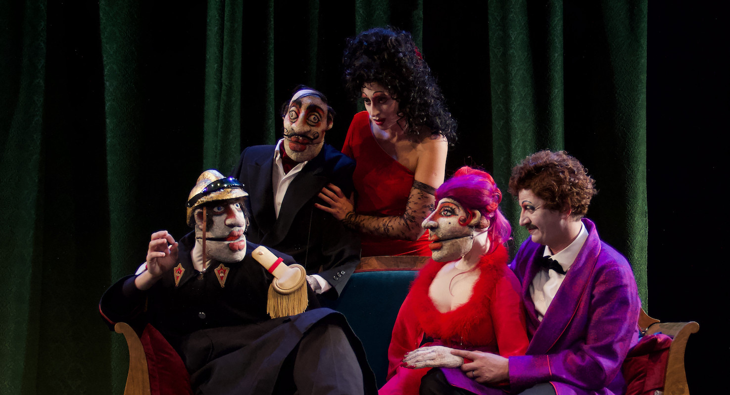 Une satire comique de notre société, dans une version hors norme, pour quatre comédiens et trois marionnettes de grandeur humaine. Cette conception trouve ici sa légitimité, car elle démasque ces êtres marionnettisés par l’absurdité de la petite bourgeoisie qui les tourne en ridicule.